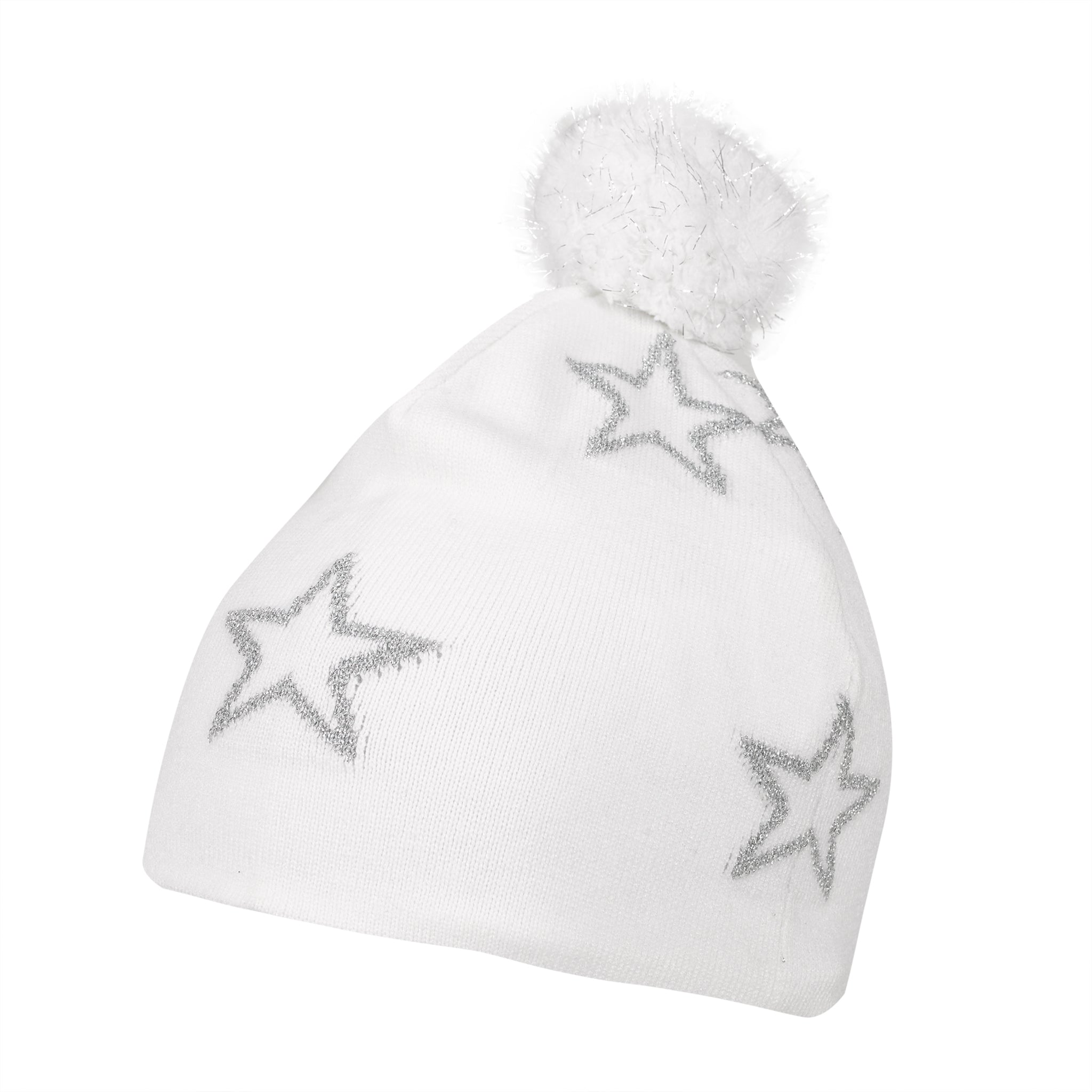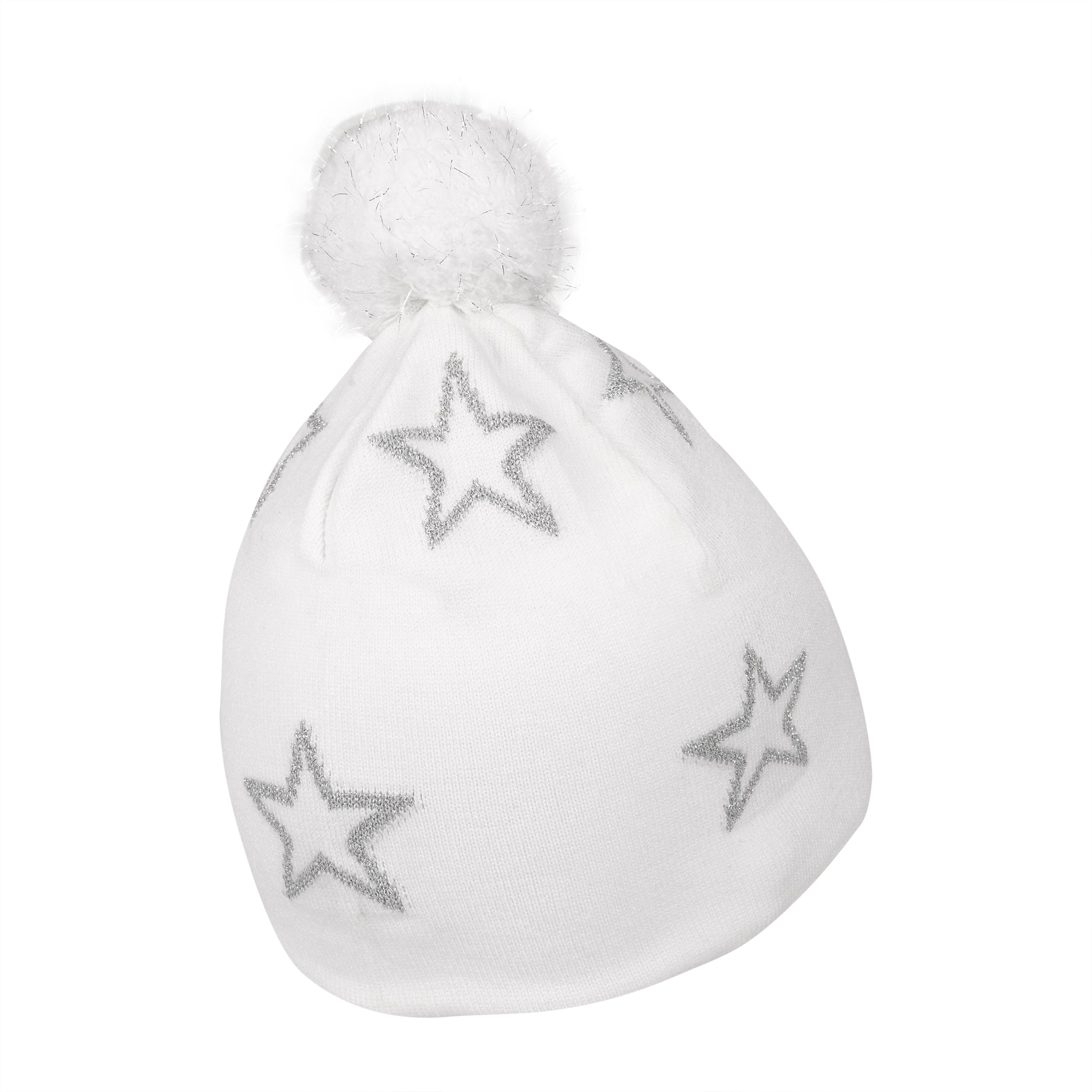 Keep those ears toasty! Knit cap with metallic threaded stars.