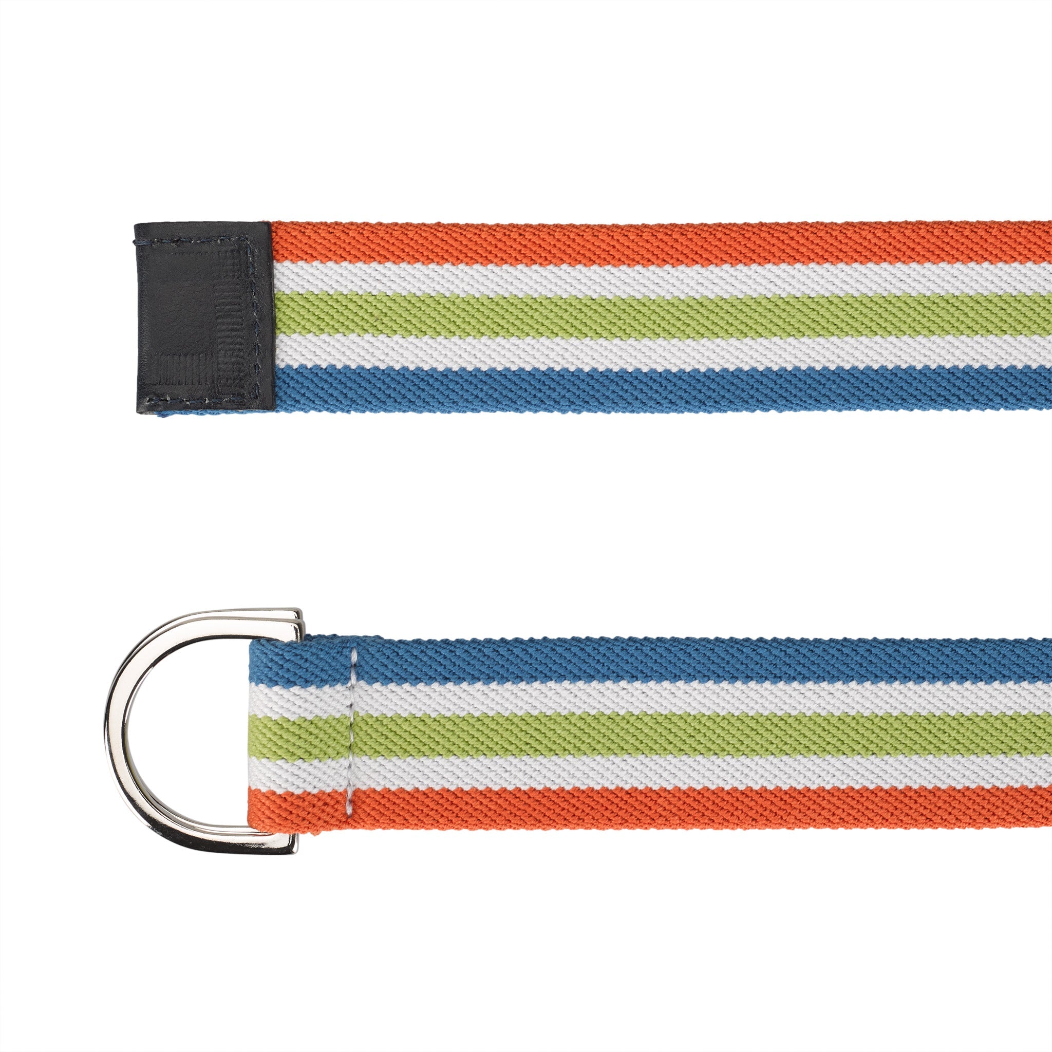 Printed belt (on both sides) in stretch woven fabric. D-ring closure. Available in Sizes S/M and L/XL.