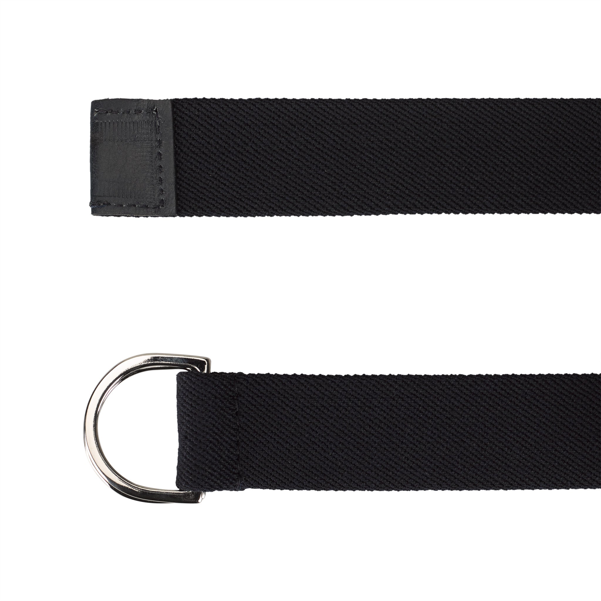 Solid belt (both sides) in stretch woven fabric. D-ring closure. Available in sizes S/M and L/XL