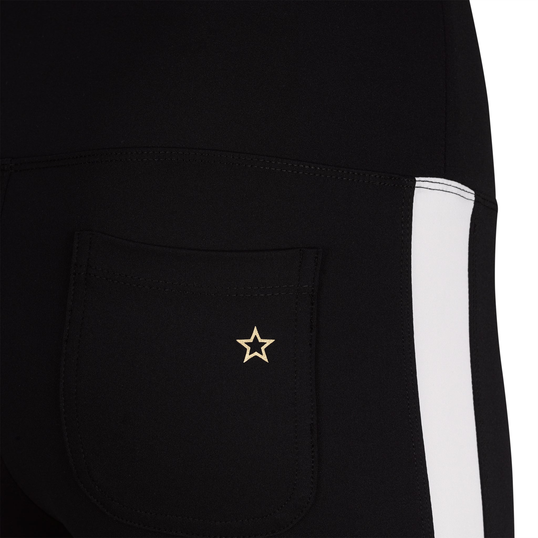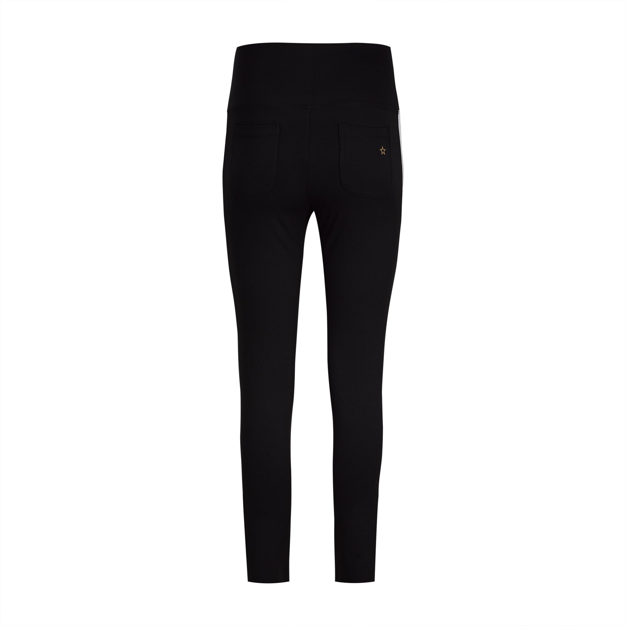 Pull on pants with back pockets! Sporty stripe down side panels. Wear with The Bond Girl Jacket for an elegant athletic suit look. 73% PA / 27% ELASTANE
