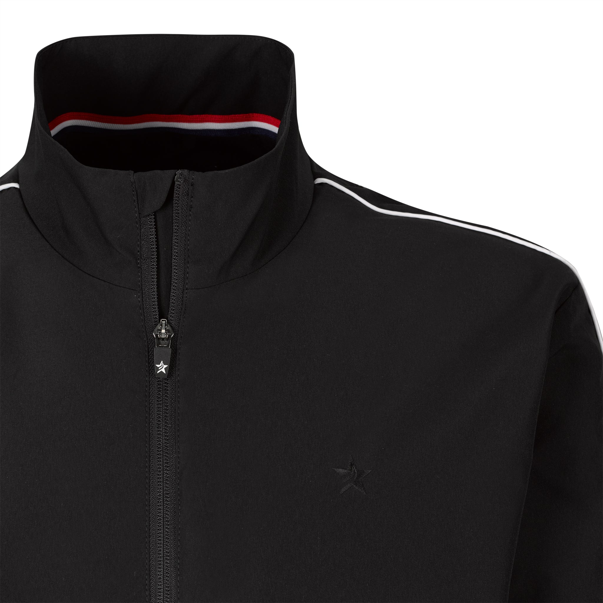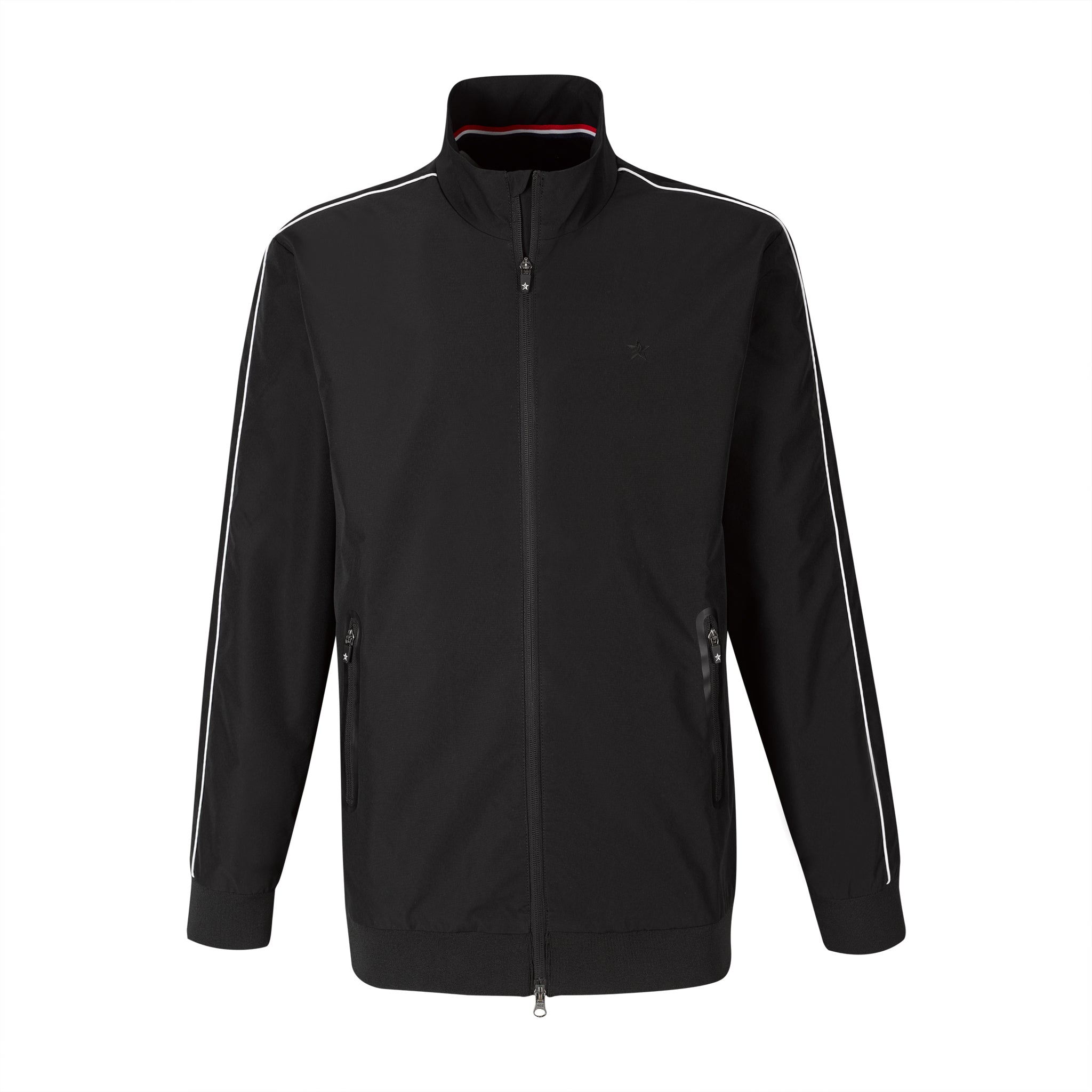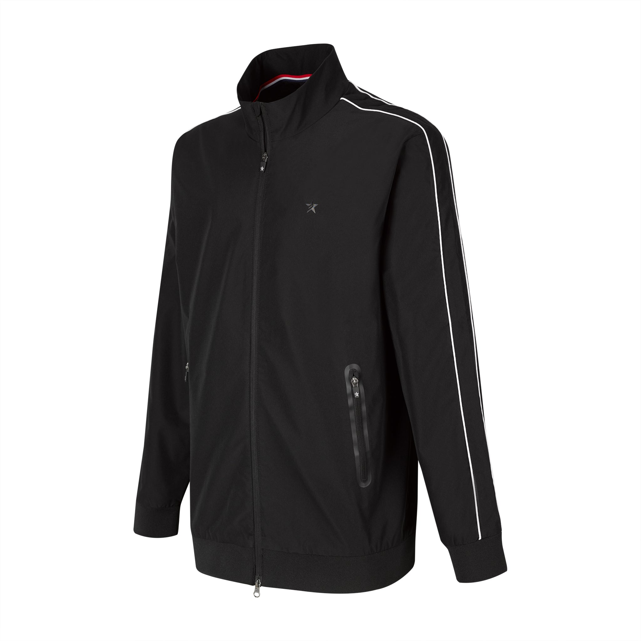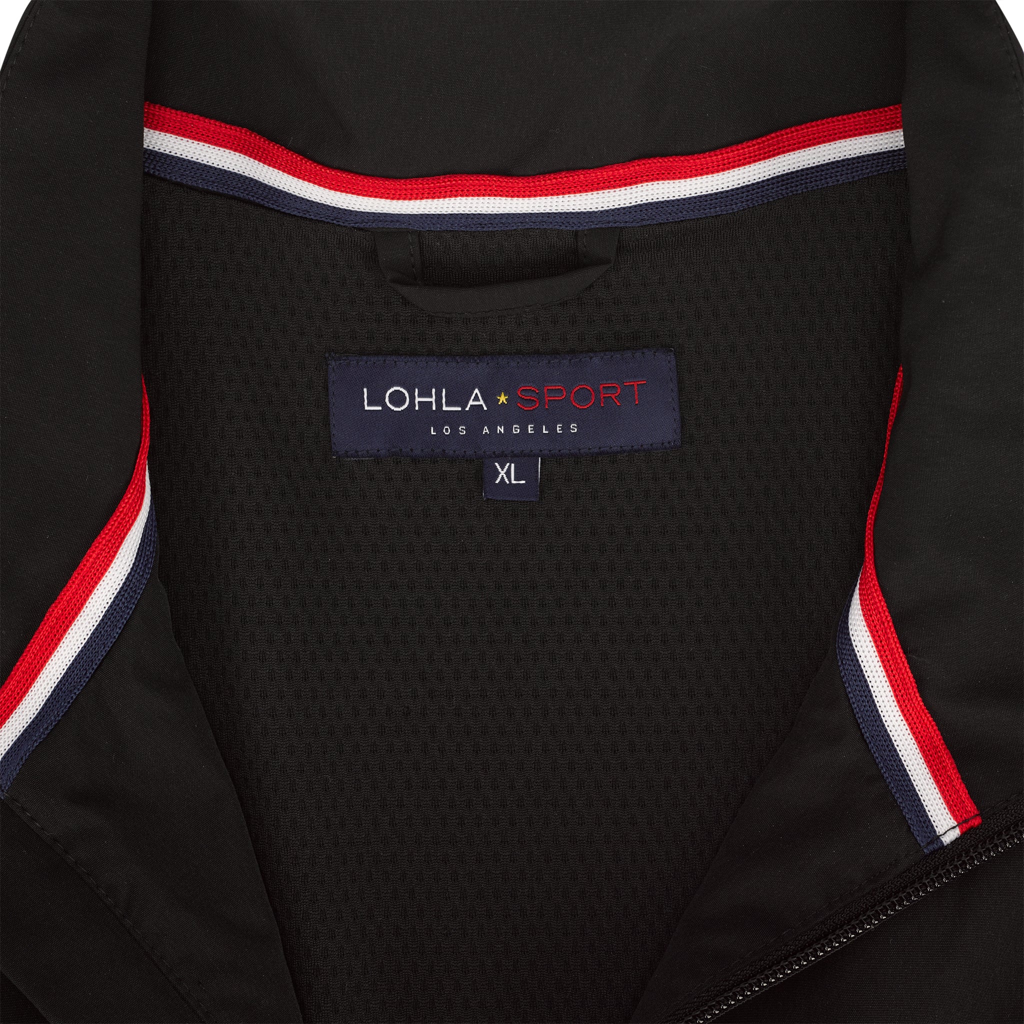 Full zip jacket with two front zip up pockets. Dual piping stripes down arms for a sporty look. Sturdy feel. Banded waist and wrists. Tonal LOHLA SPORT Race Star logo on left chest. 100% Polyester.