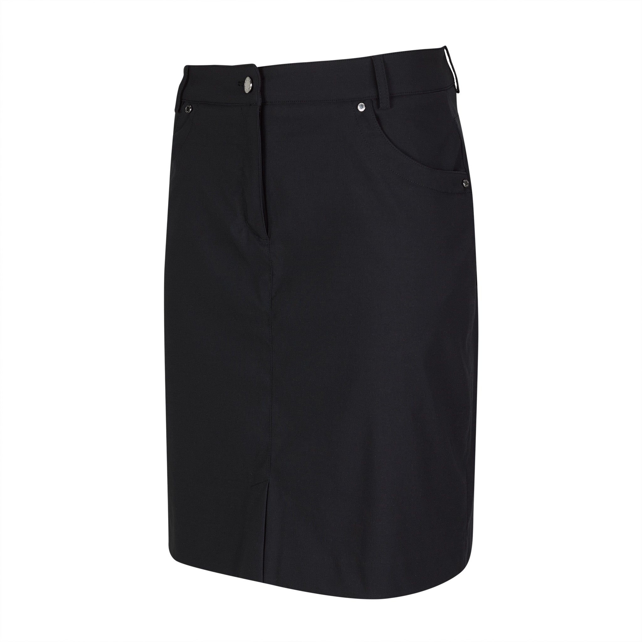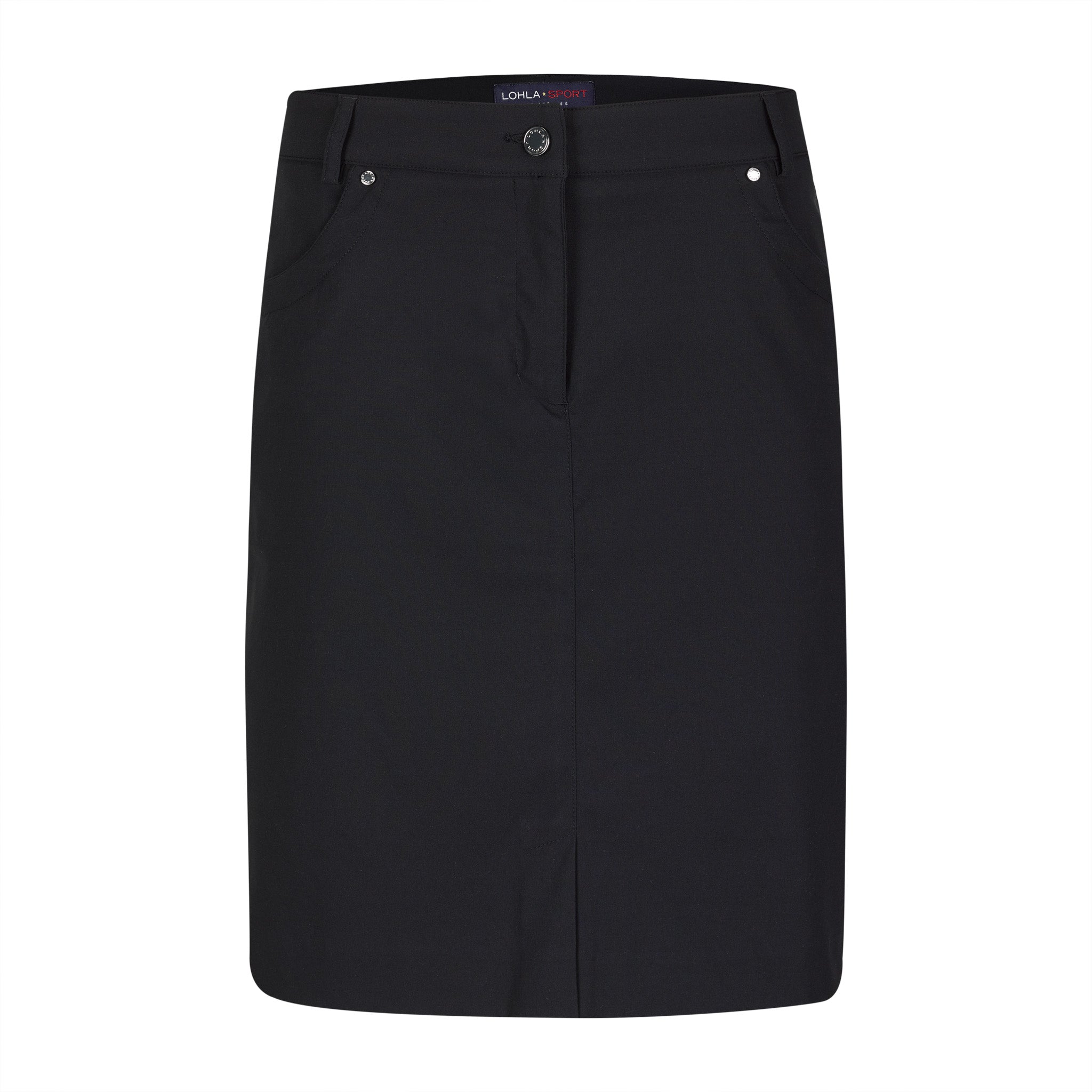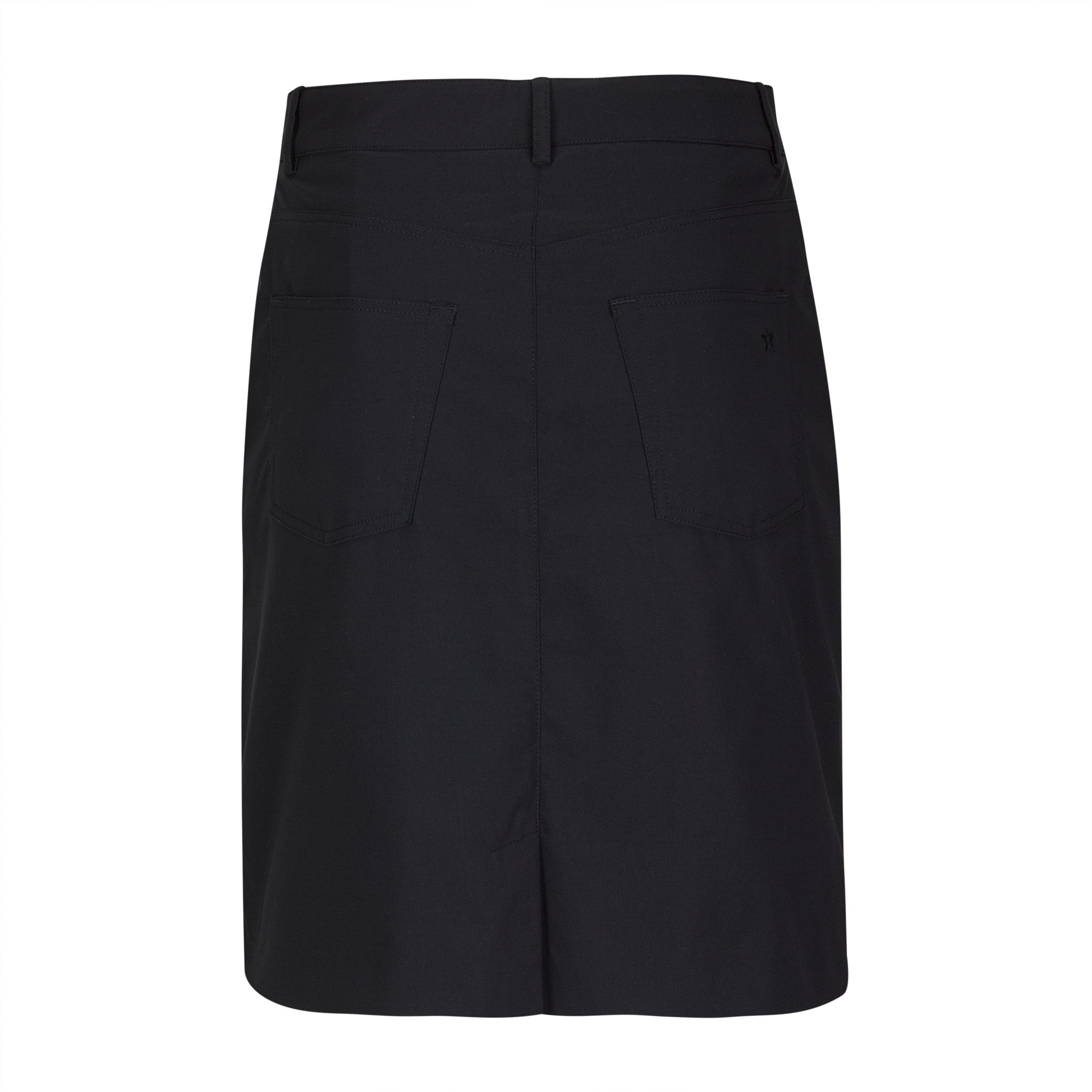 The perfect skort for sport or lifestyle. Button closure. Front and back kick pleat for optimal movement. 19" length. French luxe stretch fabric.