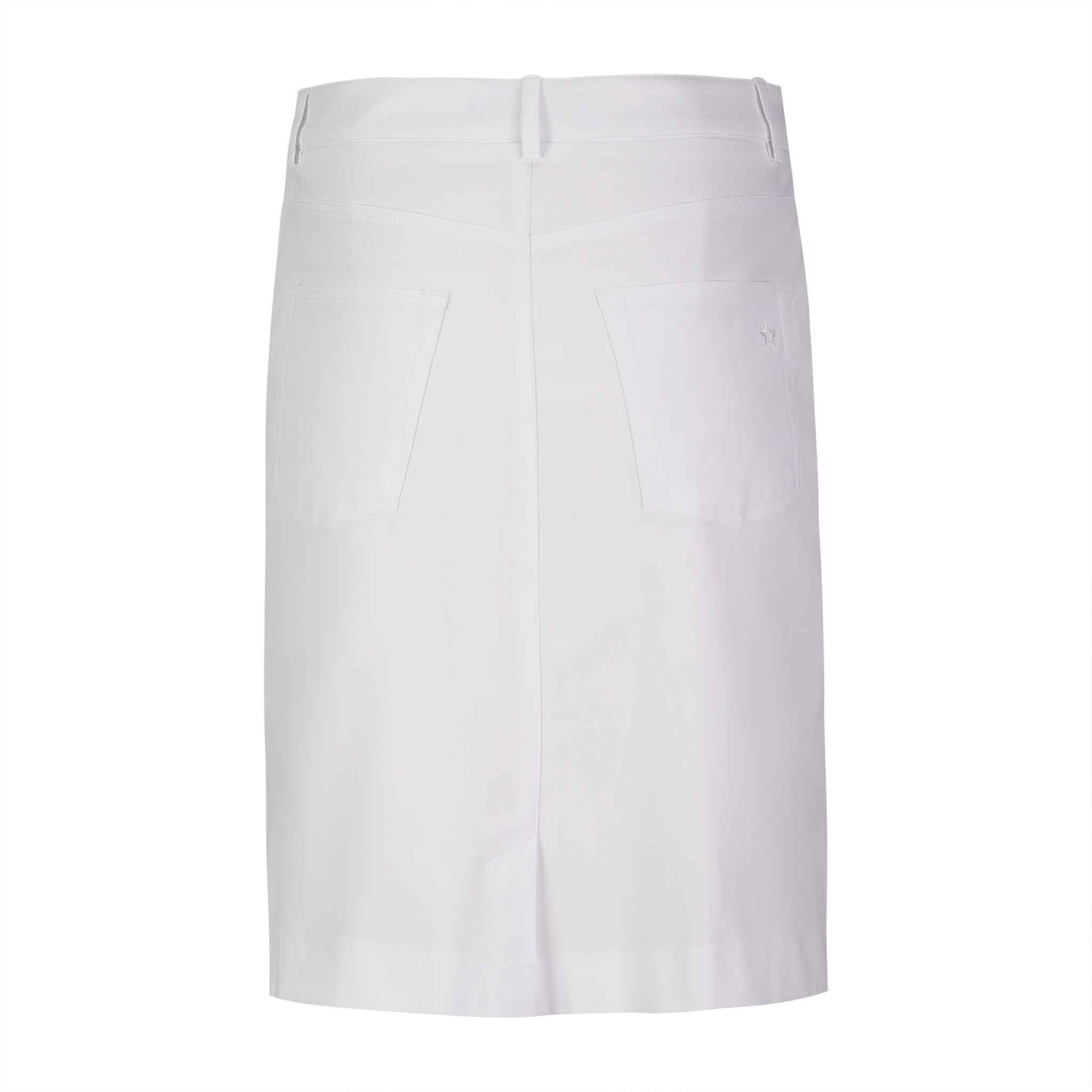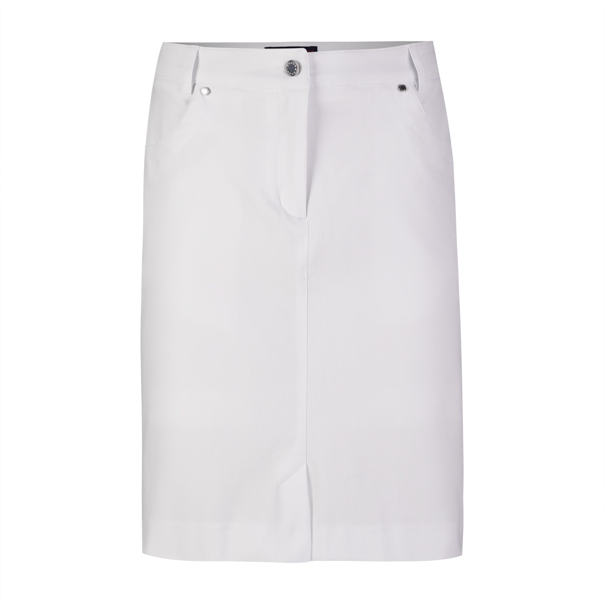 The perfect skort for sport or lifestyle. Button closure. Two front pockets and two back pockets. Front and back kick pleat for optimal movement. 19" length. French luxe stretch fabric.