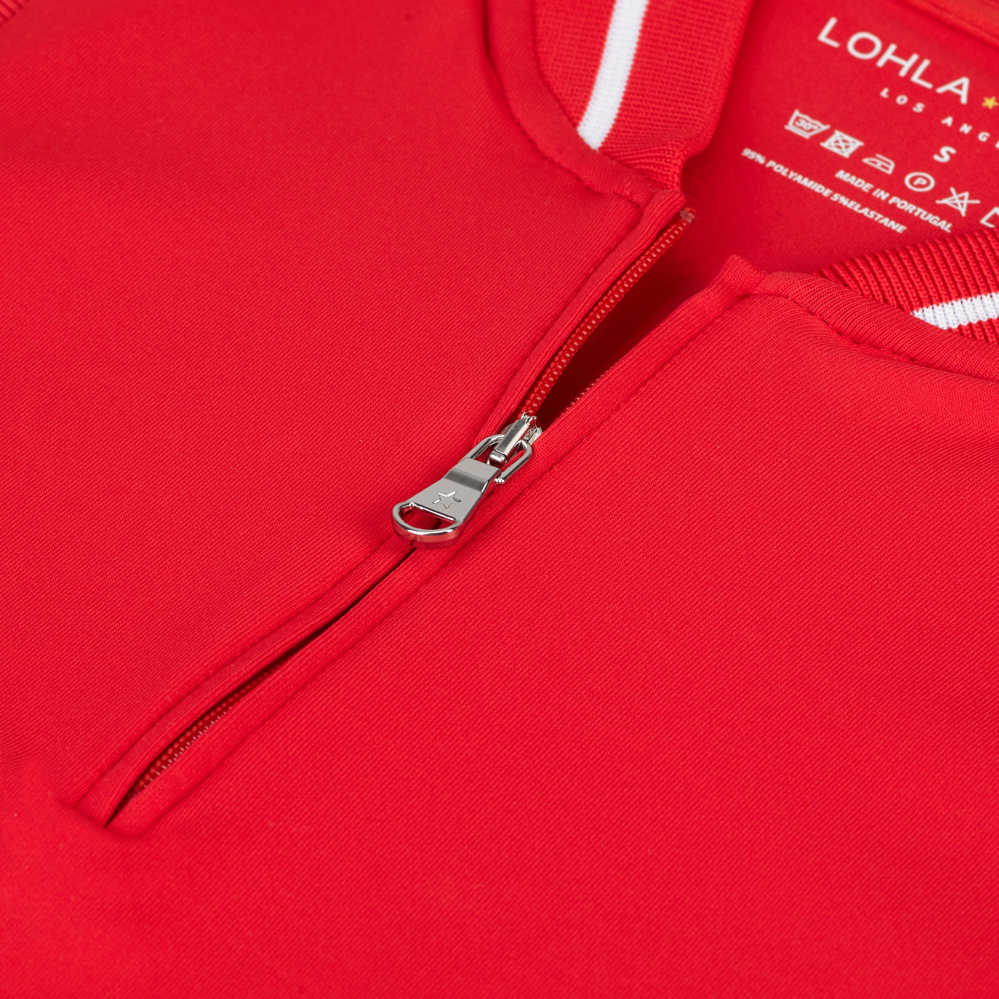European inspired sleeveless top. Solid in color, high on fashion. Knit abbreviated collar with contrast stripe. SPF 30. 95% POLYAMIDE / 5% ELASTANE